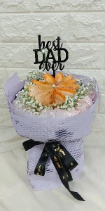 Beautifully arranged bouquet of RM120 cash with fresh baby breath. Perfect for any occasion from birthdays to holidays.