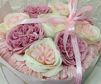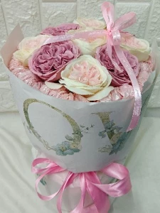An elegance scented Austen Rose soap flower bouquet.