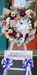 Lush, vibrant floral arrangement Expertly crafted by local florists Arrives ready to display at the funeral service Customizable with personal message card