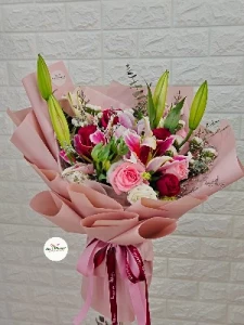 Premium Mix of fresh roses and lilies. Ideal for anniversary, Mother's Day, birthdays and other occasions.