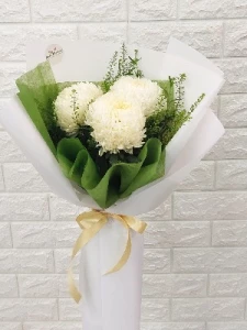 Visiting a loved one's final resting place is a profound and emotional experience. This thoughtfully designed bouquet offers a dignified way to pay your respects and find comfort in your grief. Featuring vibrant chrysanthemum big mums, a classic funeral flower, alongside lush complementary greenery, this arrangement exudes elegance and timelessness. Let the beauty of this bouquet be a symbol of your enduring affection as you honor your loved one's memory. It's comforting presence will provide solace during this difficult time.