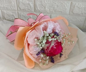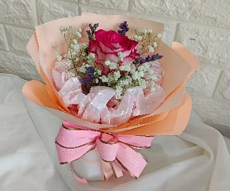 A petite single rose bouquet. Get ready for a delightful surprise that'll bring smiles and joy!