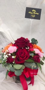 A vase centerpiece arrangement of musky fresh roses. It can be as a gift for someone, or it can be place on coffee table to compliments your home decor. This item needs to order in advance.